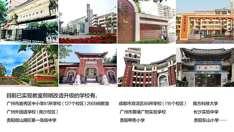 廣東省大學中小學校園單(dān)位LED護眼教室燈/LED黑板燈/節能燈改造案例部分項目列表